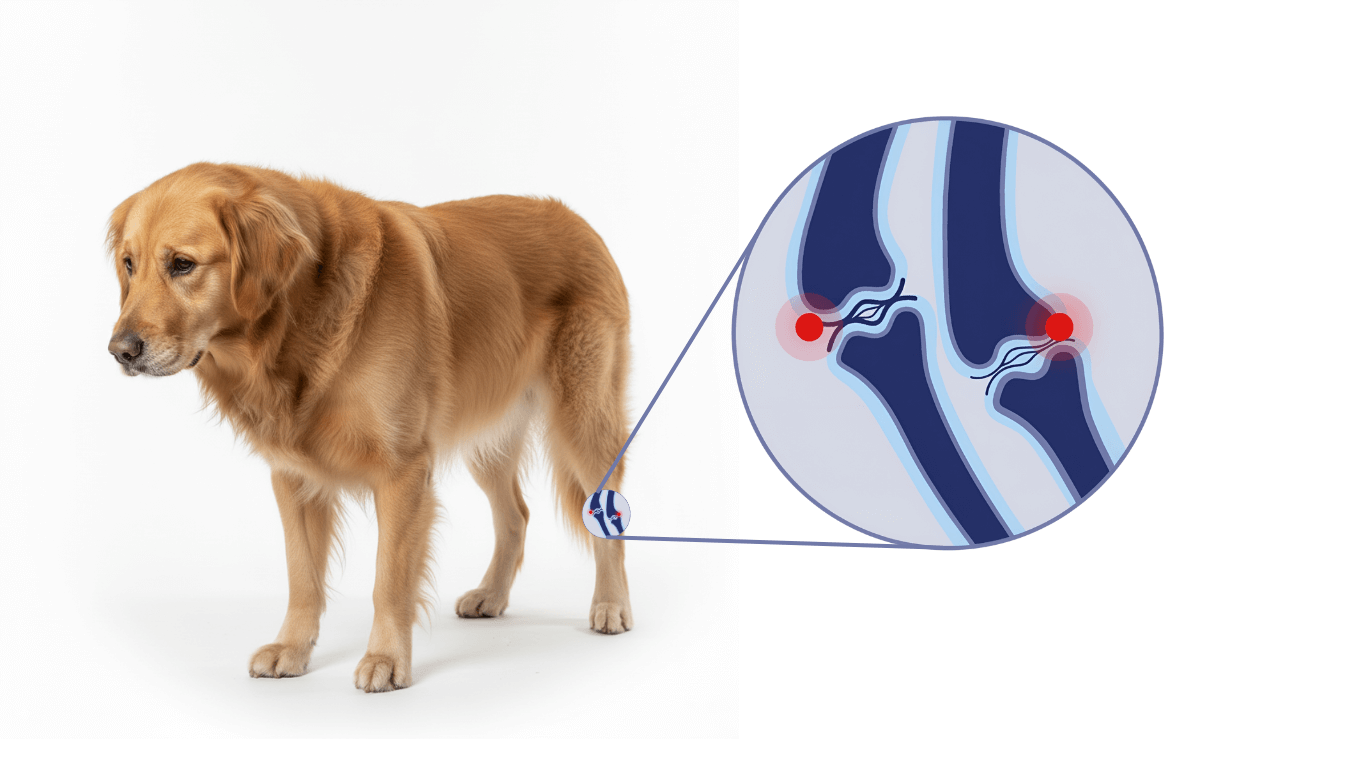❌ Stiff joints turn once-playful runs into limps and whines.