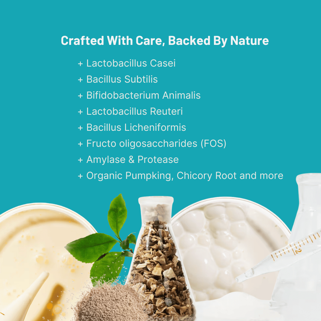 While probiotics can help during digestive upsets, their real power is in prevention. Daily probiotic support helps maintain a balanced gut microbiome — reducing itching, gas, and bad breath before problems even start. Healthy gut, healthy dog!